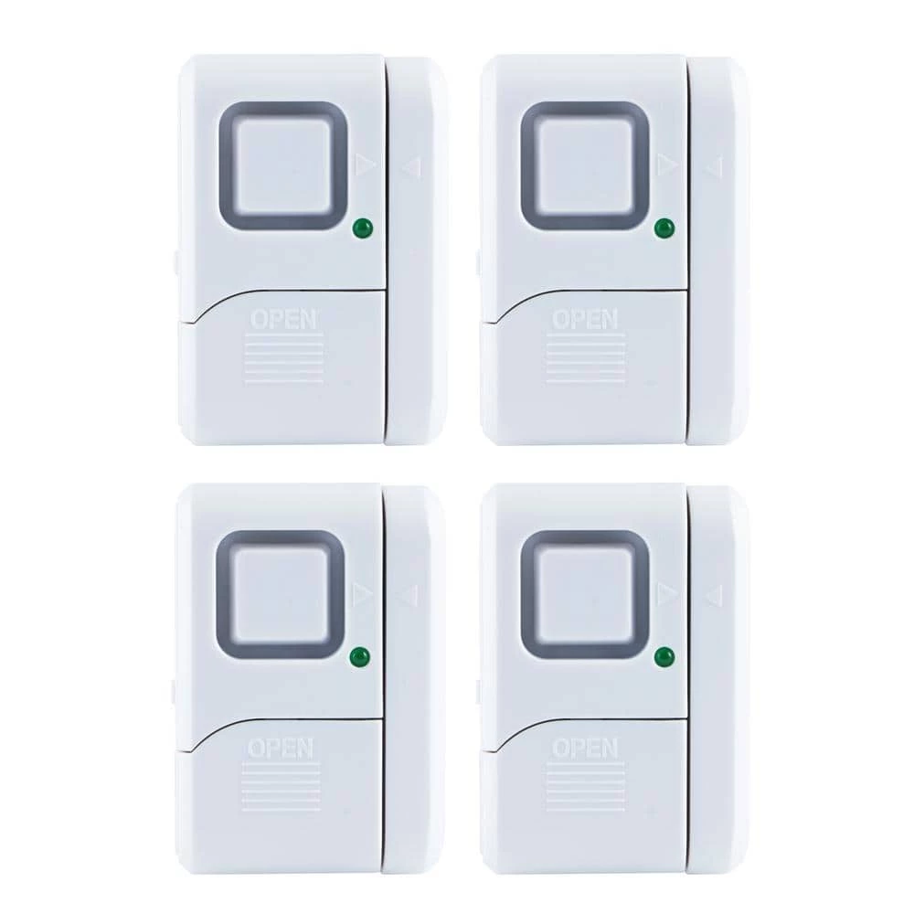 The GE Personal Security Window or Door Alarm provides a simple-to-use, cost-effective security solution to protect you and your family against home invasions. Perfect for homes, apartments, dorm rooms and offices, it includes four independent window or door alarms, each with a built-in 120dB alarm, loud enough to make a would-be intruder think twice about entering through your doors or windows. The window/door alarms feature a contemporary design with easy access buttons to set your sound to off, chime or alarm. This straightforward concept makes using the GE Personal Security Window or Door Alarm intuitive. With no wires required for installation, protecting any window/door in your home is easy – simply attach the alarm to your window/door with double-sided tape (included). Each window alarm features a low battery test button for checking battery life and requires 4 LR44 batteries (included). This product is backed by a 90-day limited warranty.