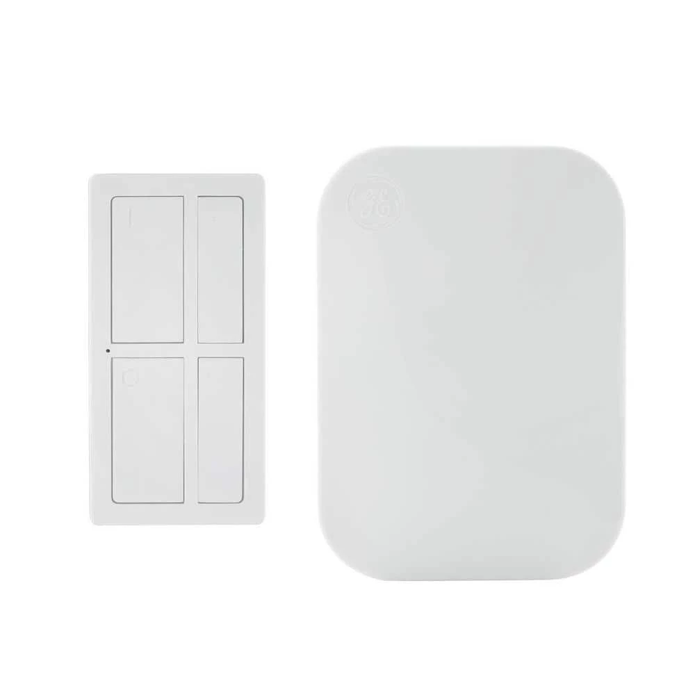 The power of light is at your fingertips with the mySelectSmart Wireless Remote with Dimming Lighting Control. A convenient lighting solution for any household, the wireless remote works as a portable lighting control, and can be mounted on the wall, with a wall plate by itself, or next to an existing switch. Simply connect the light you want to control to the plug-in receiver, plug the receiver into a nearby outlet and you’re ready to go. The remote also features full-range dimmability, allowing you to select the perfect amount of light for any time of day. To brighten or dim the lights, simply press the up or down arrow buttons on the right side of the remote. With an overall signal range of 150 feet, the discreet, versatile design of the remote makes it suitable for controlling lights in any indoor space. Take control of your lighting with mySelectSmart wireless lighting controls. *Functional range may be adversely affected by one or more of the following factors: weather, radio frequency interference, low transmitter battery and obstructions between the transmitter and receiver. **Additional GE mySelectSmart wireless receivers and transmitters are sold separately.