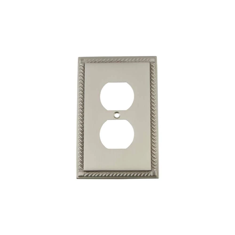 Capturing a refined, sculpted look, our Rope Rosette switch plates offer rich detail along the border without creating a busy look. This style has been around for centuries and perfectly complements any traditional or rustic home. With our Satin Nickel finish, you can showcase a more neutral look that coordinates well with any traditional, vintage or contemporary home. Available in a variety of configuration options including: 1 Toggle, 2 Toggle, 3 Toggle, 1 Duplex (Socket), Double Duplex (Socket), 1 Toggle / 1 Duplex (Socket), 1 Duplex (Socket) / 1 Rocker, 1 Rocker, 2 Rocker, 3 Rocker, 1 Toggle / 1 Rocker and Blank.