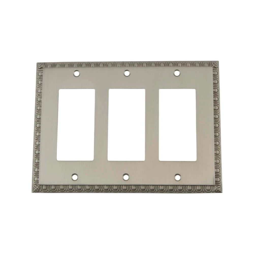 The elegant, floral detail around the edges of the Authentic Egg and Dart switch plate exudes sheer class and glamor. The intricate, neo-classical detail of the switch plate spruces up any traditional home. With our Satin Nickel finish, you can showcase a more neutral look that coordinates well with any traditional, vintage or contemporary home. Available in a variety of configuration options including: 1 Toggle, 2 Toggle, 3 Toggle, 1 Duplex (Socket), Double Duplex (Socket), 1 Toggle / 1 Duplex (Scoket), 1 Duplex (Socket) / 1 Rocker, 1 Rocker, 2 Rocker, 3 Rocker, 1 Toggle / 1 Rocker and Blank.