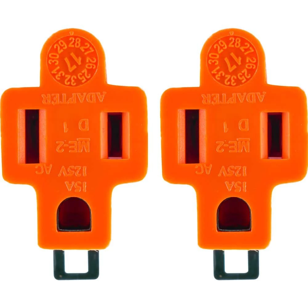 Add versatility to any receptacle with this set of ten GE-branded Polarized Grounding Adapters. Each adapter allows polarized 2-slot outlets to accept grounded 3-prong plugs. Just plug the outlet adapter into your polarized outlet, then fasten the green tab under the metal wall plate mounting screw to complete the grounding path. The bright orange color of the adapter makes it easy to spot for added safety. For indoor use only, this grounding adapter plug has an electrical maximum rating of 15 Amp/125VAC/1875-Watt. Use your outlet to its full potential with the GE-branded Polarized Grounding Adapter.