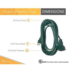 25 ft. 16/3 SJTW Tri-Source (Multi-Outlet) Yard Master Outdoor Extension Cord by Woods
