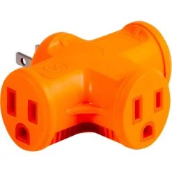 Heavy-Duty 3-Outlet T-Shaped Grounded Tap Adapter Plug, Orange (5-Pack)