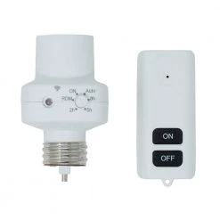 2-5-8 Hour Photocell Control Light Socket Timer with Wireless Remote Control, White by Woods