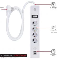5 ft. 6-Outlet 1080-Joule Surge Protector Power Strip with Remote Control and Safety Covers by Woods