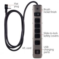 4 ft. 16/3 10-Outlet 3540J Surge Protector Power Strip Extension Cord with USB Hub, Black