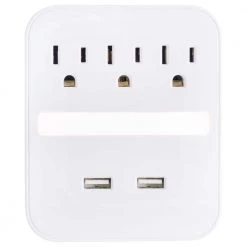 3-Outlet 440J Surge Protector Outlet Extender with USB Hub and Night Light, White, (2-Pack)