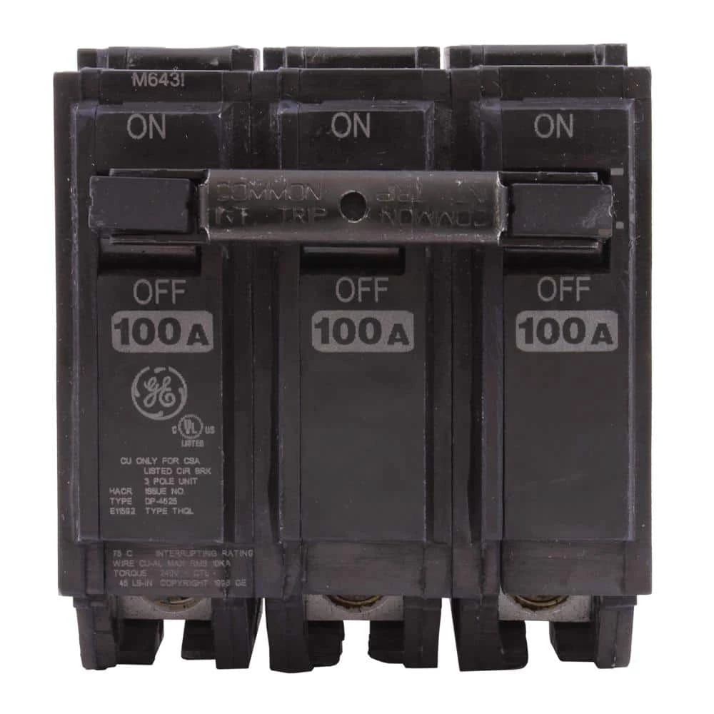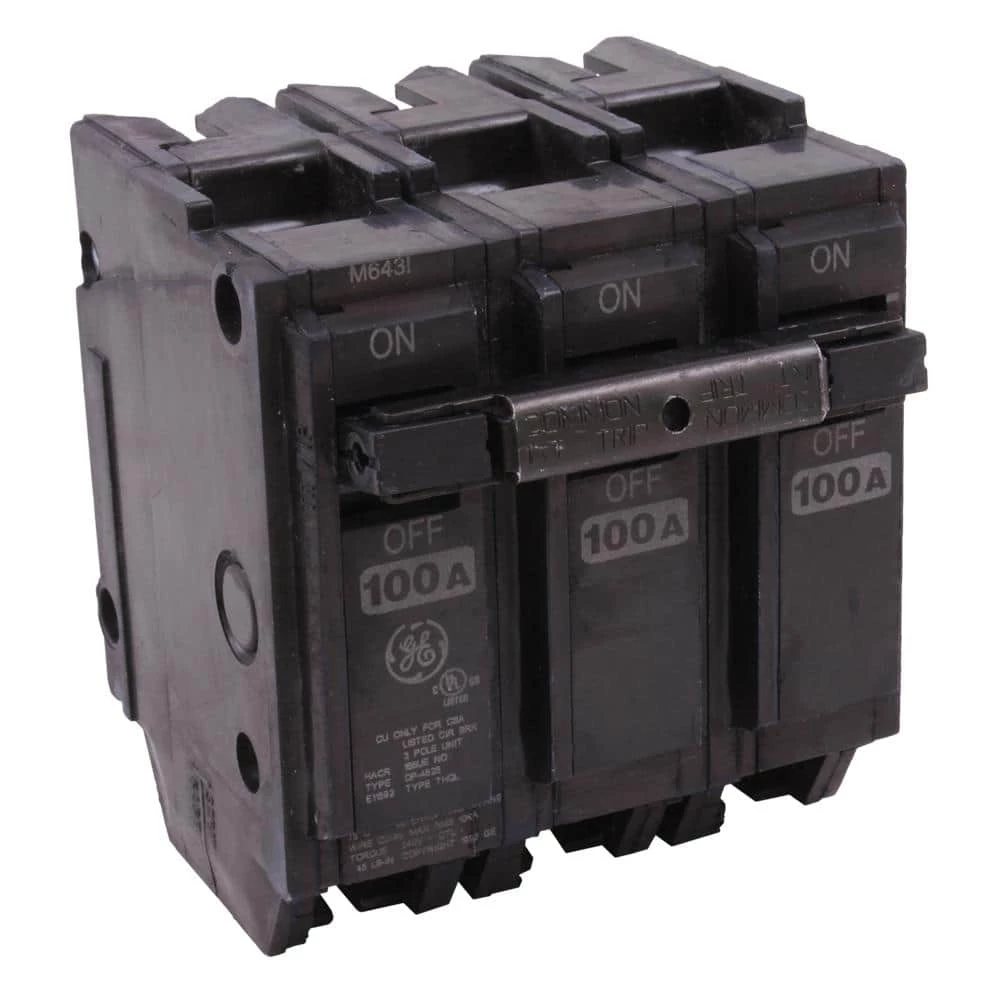 The GE Q-Line 100 Amp 3 in. Triple-Pole Circuit Breaker has a case made of heat-resistant thermoset for stability and structural integrity. The unit has a tin-plated copper stab to create a reliable, permanent and corrosion-resistant connection. The circuit breaker has a dedicated calibration screw which is cemented to prevent shifting. The attached screw creates a stable calibration for optimum performance.