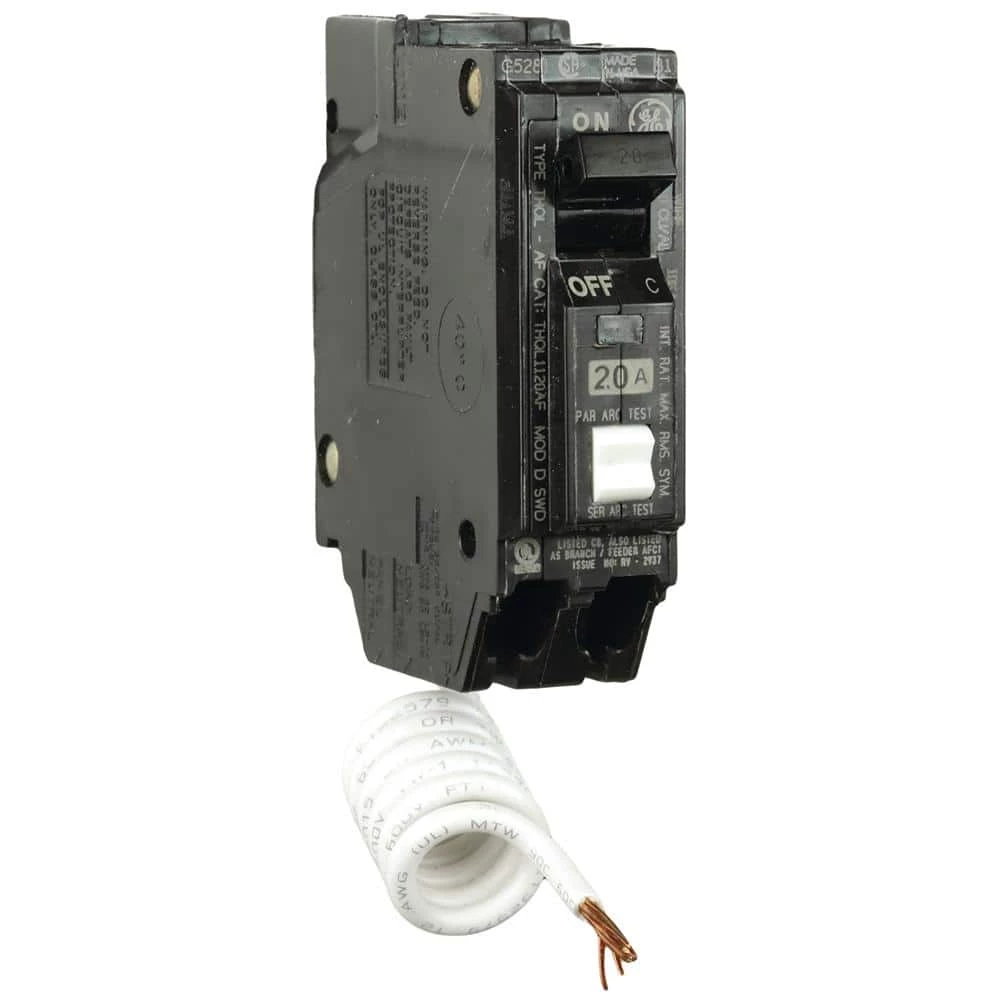 The GE Q-Line 20 Amp 1-1/4 in. Single-Pole Arc Fault Combination Circuit Breaker detects arc faults in both parallel and series wiring. The circuit breaker has a dedicated calibration screw which is cemented to prevent shifting. The attached screw creates a stable calibration for optimum performance. The unit has a tin-plated copper stab to create a reliable, permanent and corrosion-resistant connection. The breaker case is made of heat-resistant thermoset for stability and structural integrity.