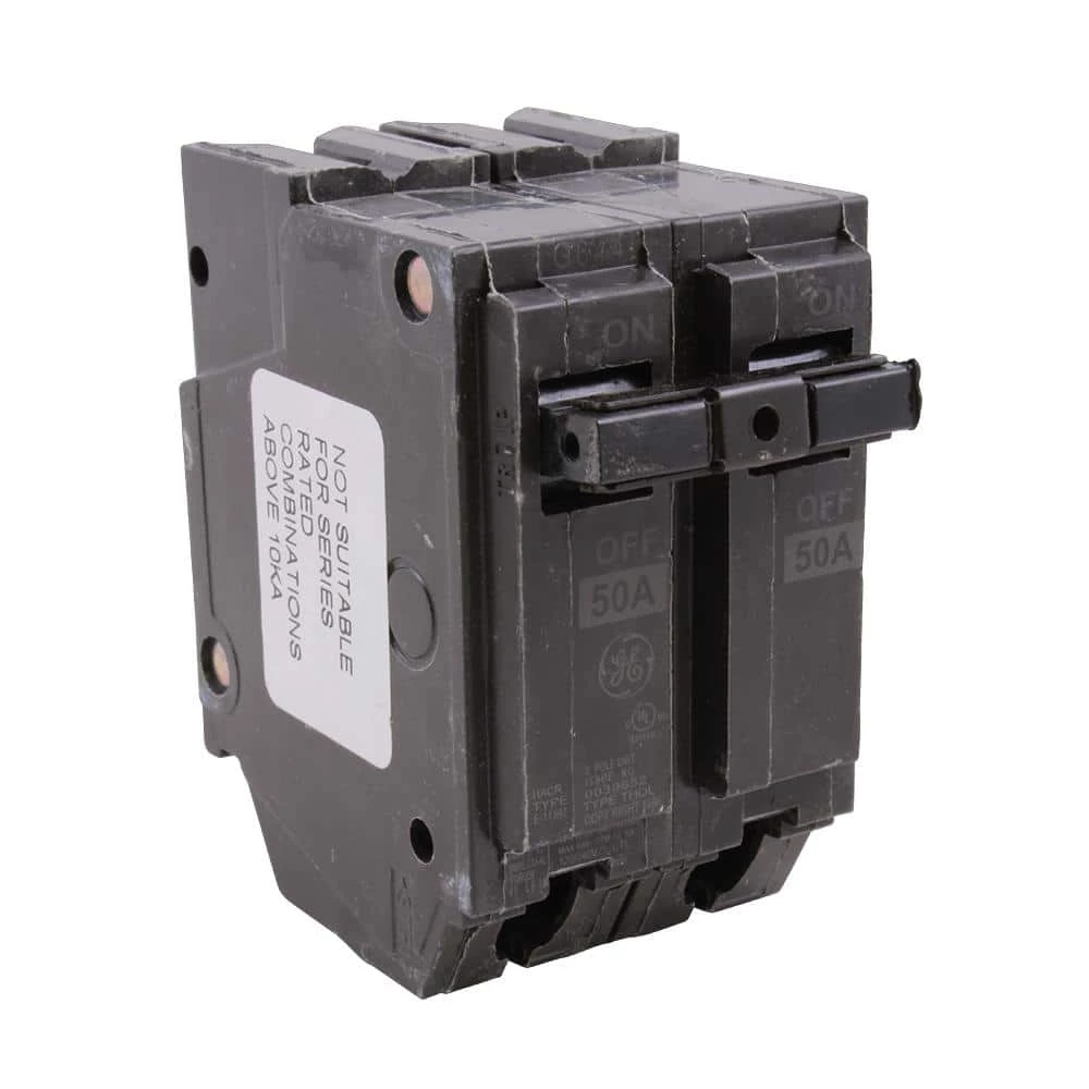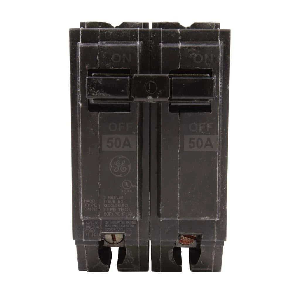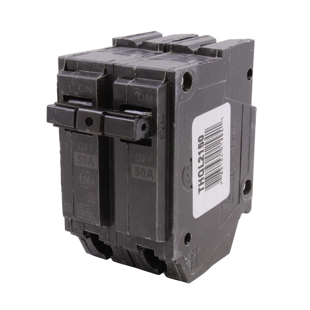 The GE Q-Line 50 Amp 2 in. Double-Pole Circuit Breaker has a dedicated calibration screw which is cemented to prevent shifting. The attached screw creates a stable calibration for optimum performance. The unit has tin-plated copper stabs to create reliable, permanent and corrosion-resistant connections. The case is made of heat-resistant thermoset for stability and structural integrity.