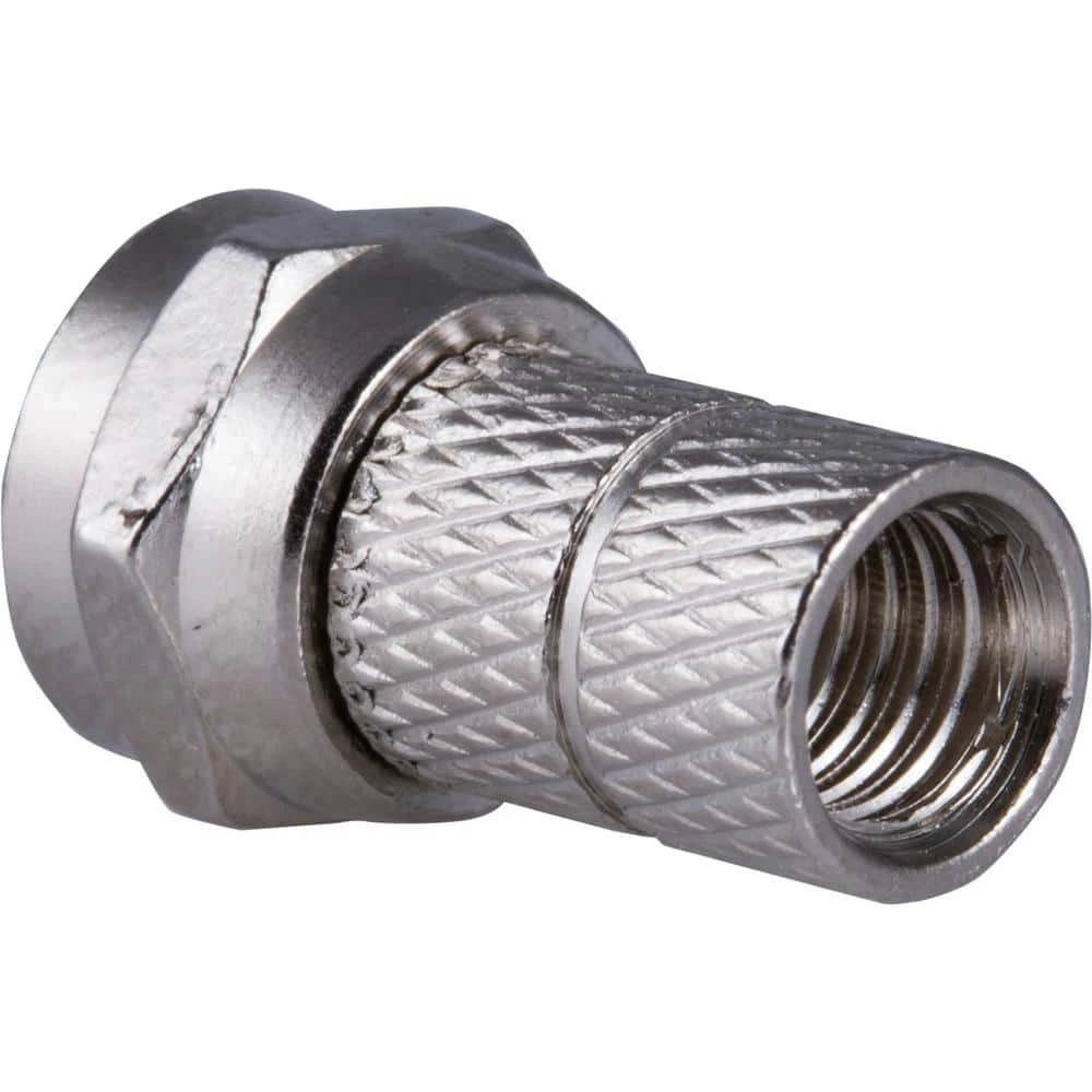 Make a quick connection with the GE-branded RG59 Twist-on F-type Connectors for coaxial cable. This package contains 50 connectors that are an ideal enhancement to cables that connect all of your audio and video components that have F-type jacks. There’s also no need to buy a new coax cable if an end is damaged. The twist-on connectors provide a low-cost replacement that is easy to install. You can also create coax cables of custom lengths to meet your specific needs. Coax cables are ideal for TVs, cable boxes, antennas, modems and many other devices. These connectors are designed to work perfectly with your electronics without a reduction in quality when compared to factory-assembled coax cables. A reliable connection is easy with the GE-branded RG59 Twist-on F-type Connectors for coaxial cable.