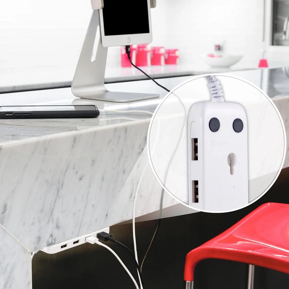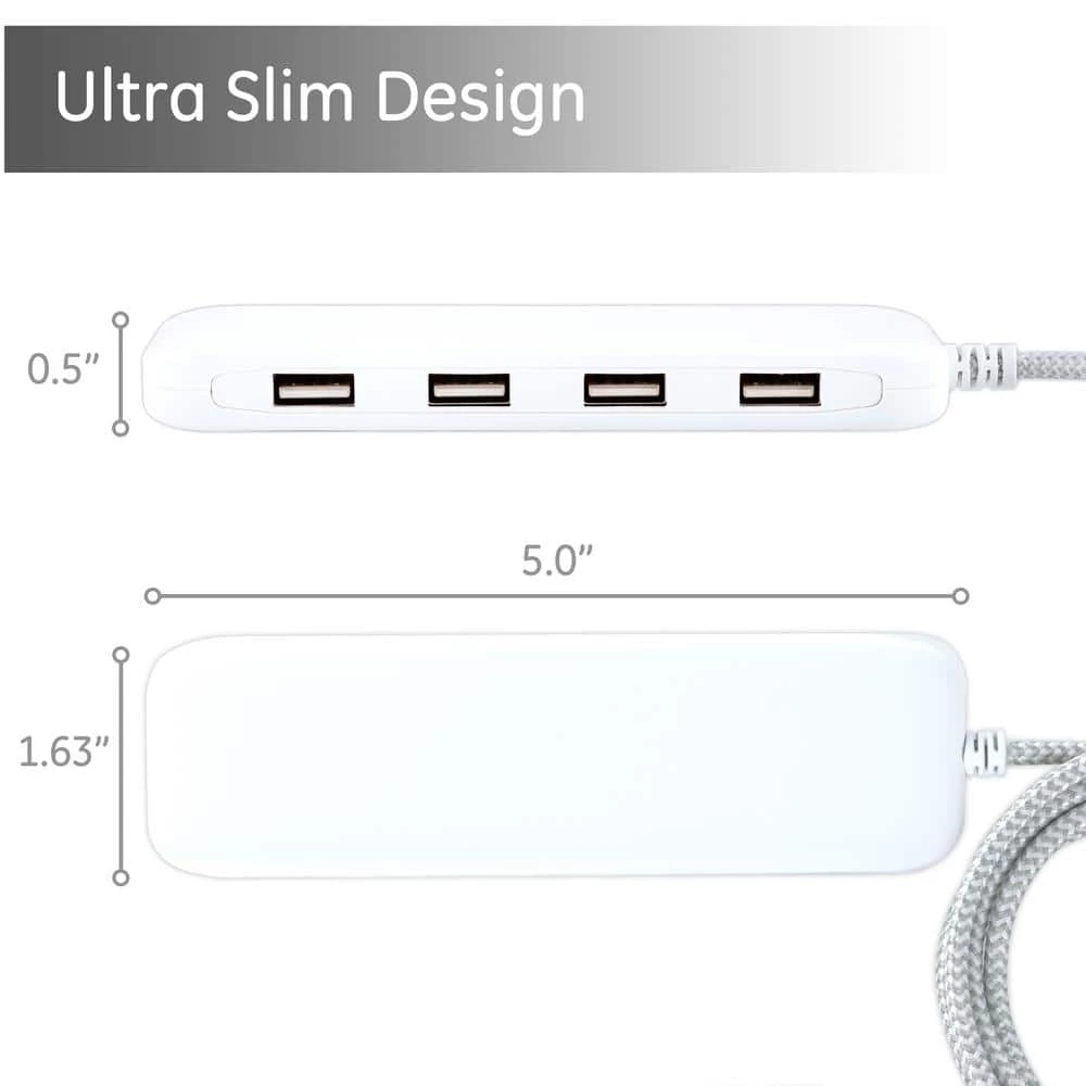 The GE Ultra Pro 4 USB Power Strip makes charging your mobile devices easier than ever. Four charging ports provide 4.8 Amp or 24-Watt of power, so you can rest assured knowing that your devices will be ready for use when you need them. The power strips design is ultra slim, allowing it to fit comfortably virtually anywhere in the home. This smart combination of form and function is further exemplified in the extra-long, 6 ft. braided cord, which extends reach to nearby outlets. Meanwhile, keyhole slots make it easy to mount anywhere, including on the wall or under a desk.
