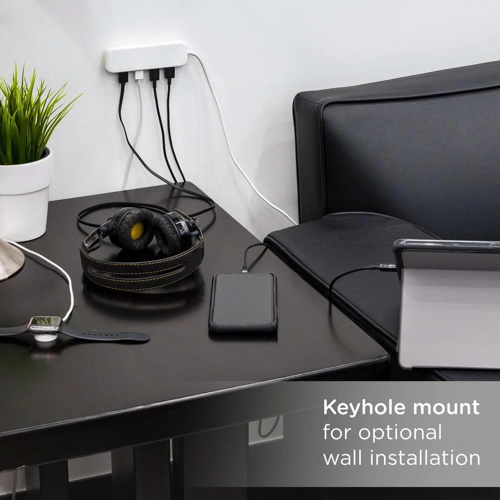 - Easy to mount this slim 4-port charger underneath a desk or to a wall for convenient charging