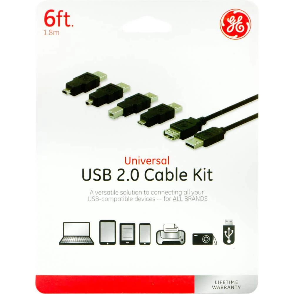 The USB Universal Cable Kit multi-use adapters fit today’s most popular USB devices. A versatile solution to connecting all your USB-compatible devices including Printers, Scanners, External Drives, Digital Cameras, MP3 Players, Card Readers, Hubs and Mobile devices. Includes 4 Adapters and one 6 ft. USB cable. Adapters included: (1) A Male to B Male, (1) A Male to Mini B (4 Pin), (1) A Male to Mini B (5 Pin), (1) A Male to Micro USB.