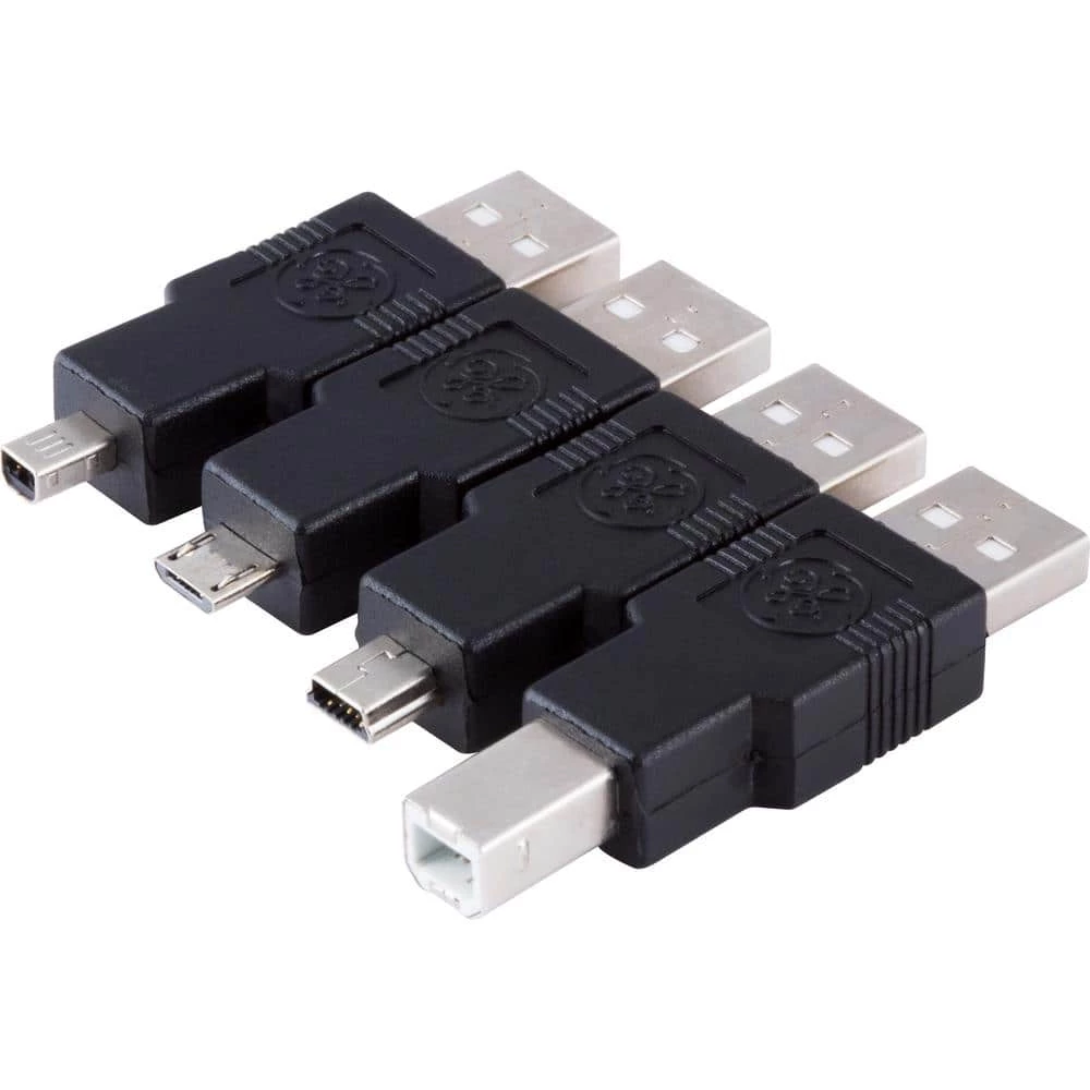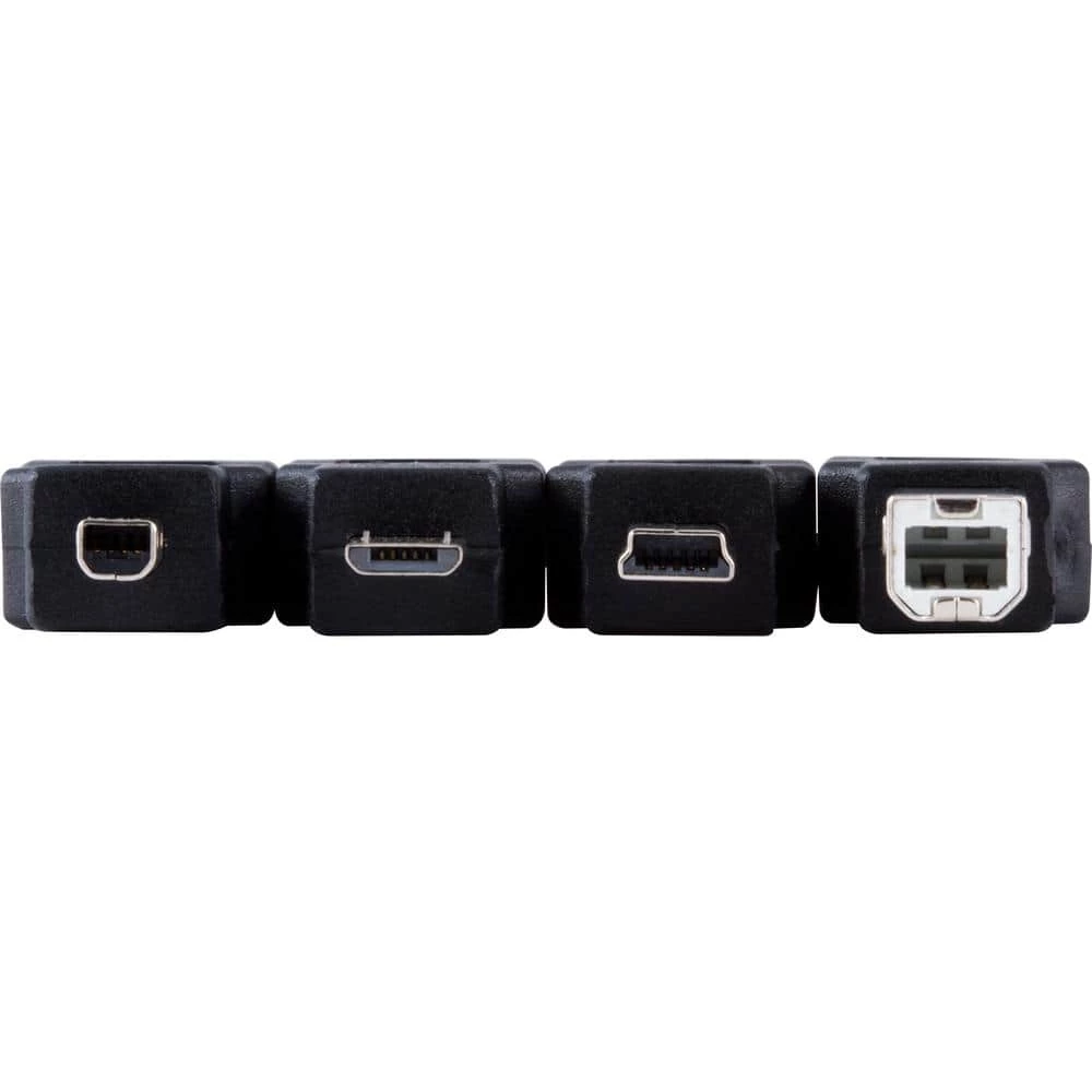 - Includes 4 adapters: (1) A male to B male (1) A male to mini B (4 pin), (1) A male to mini B (5 Pin), (1) A male to micro USB