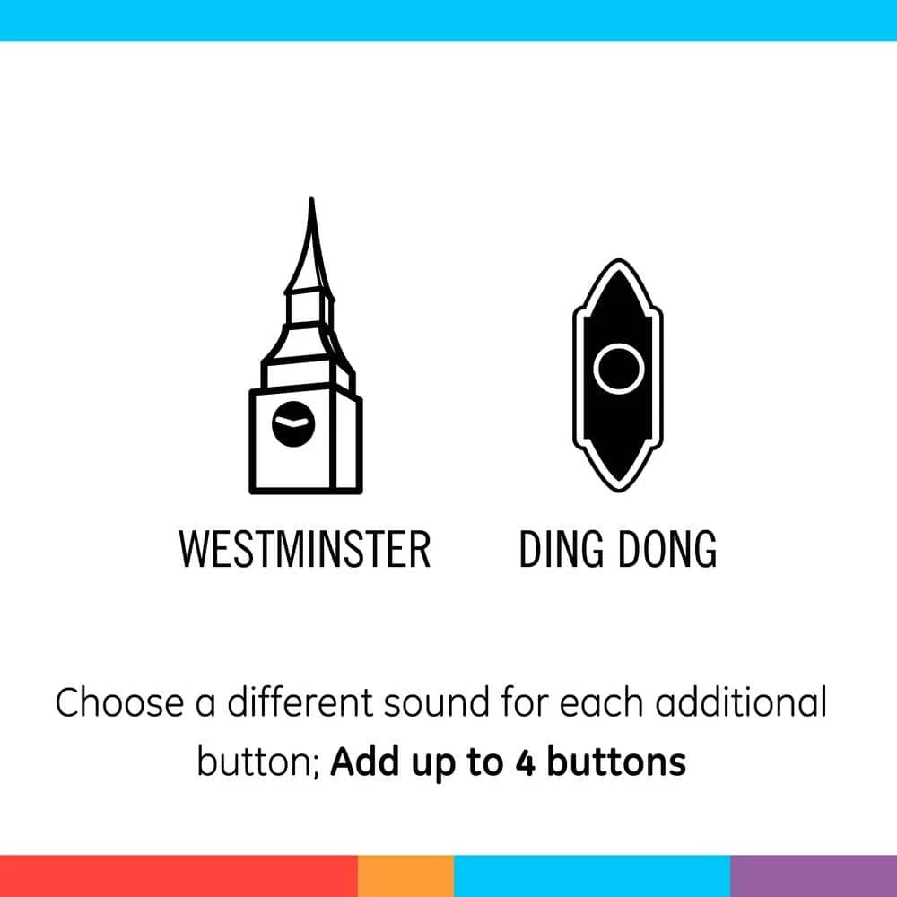 - Chime options: 2 unique sound options, including Ding Dong and Westminster; individual sounds for multiple doors and 4 volume levels