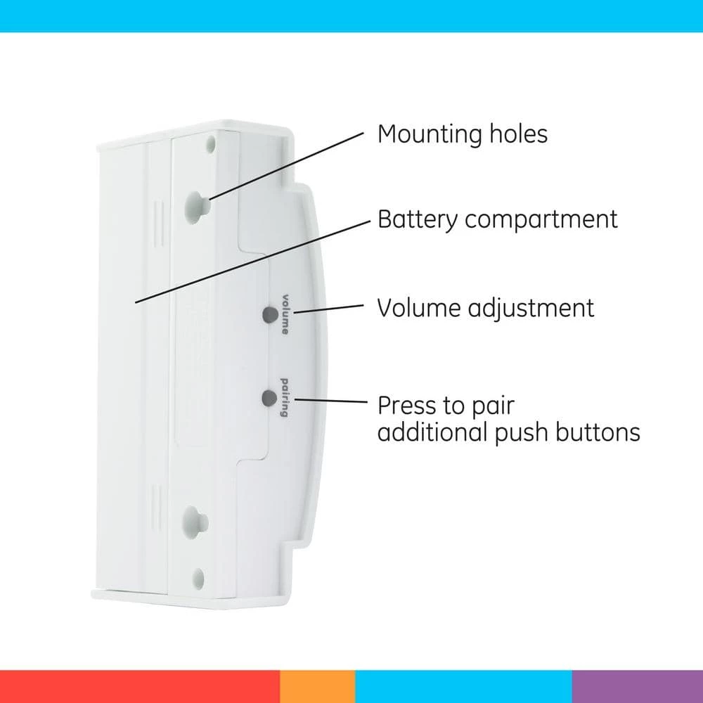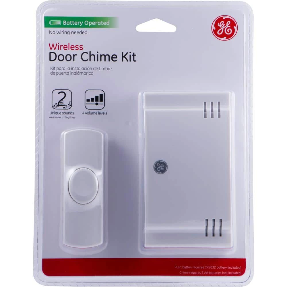 Customize your doorbell. The GE 2-Melody Door Chime allows you to easily add or install a doorbell with multiple sounds and a large (150 ft.) range so that the bell can be heard anywhere in your home. No extra wiring is needed-simply add 3 AA batteries to the chime and the bell is ready to ring. With multiple sounds that can be assigned to different doors and three separate volume settings, this doorbell is the perfect way to make your home ready for visitors.